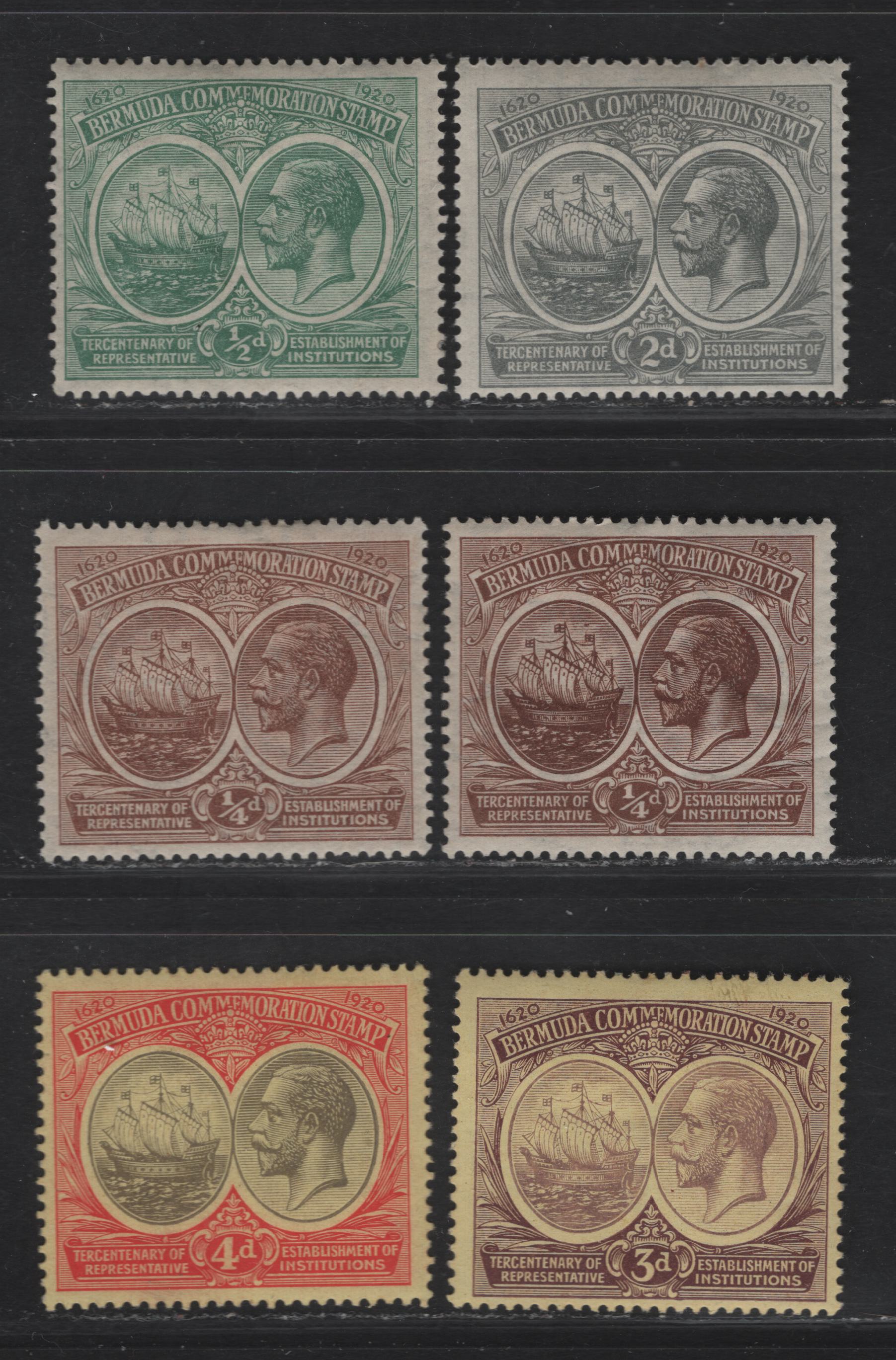 Lot 48 Bermuda SG#59-63 1/4d -4d Brown - Black & Redon Pale Yellow King George V & Ship, 1920-1921 Tercentenary of Representative Institutions, 6 F/VFOG Singles, 2 Shades