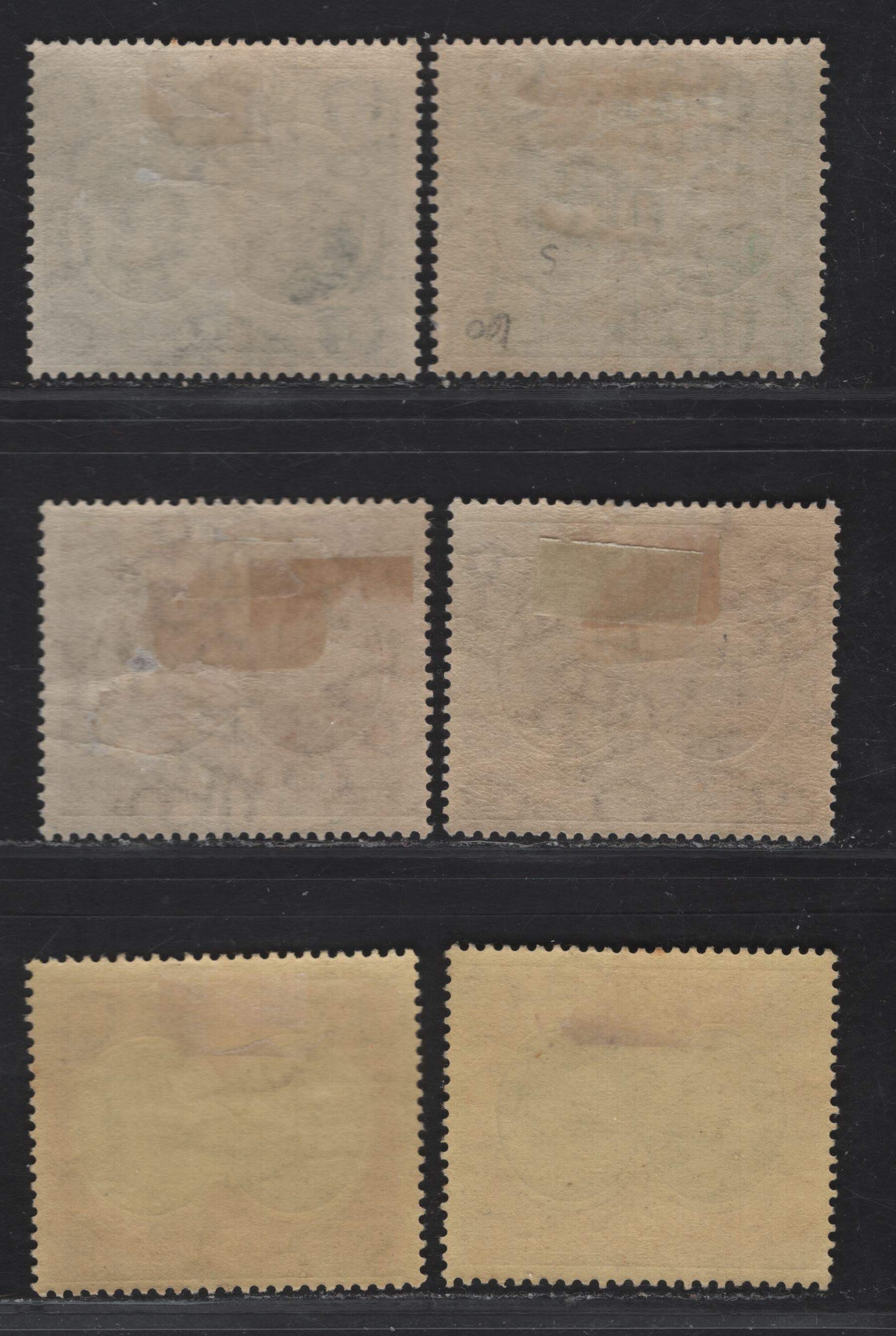 6 F/VFOG singles of the 1/4d -4d brown - black & redon pale yellow King George V & Ship from the 1920-1921 Tercentenary of Representative Institutions, 2 shades.