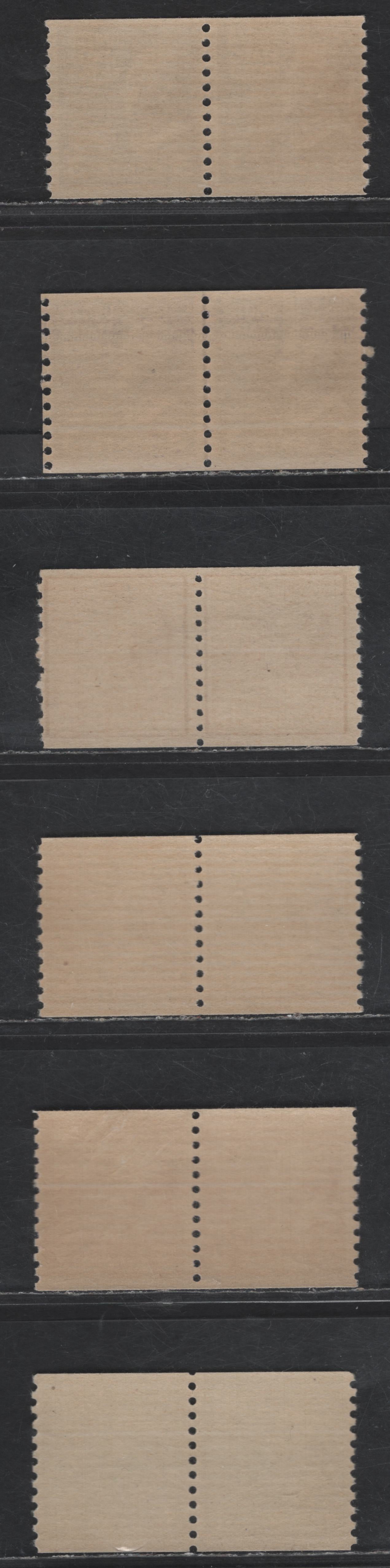 5 FNH coil pairs of the 1c - 10c green - brown red George Washington - John Tyler from the 1938-1954 Presidential Issue, perf 10 vertical, 3c gripper coil line pair, gumdisturbace on 1 stamp of 2c pair.