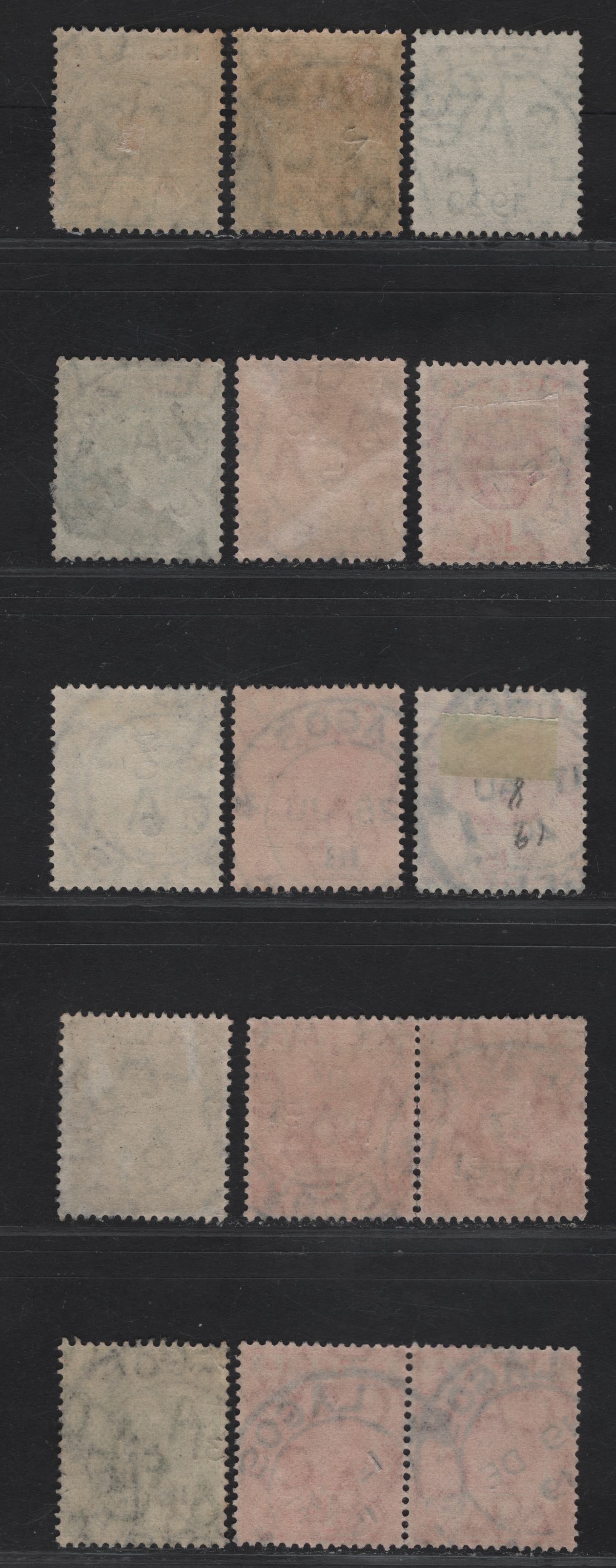 13 fine/very fine used singles of the 1/2d - 1d green - scarlet King George V from the 1914-1929 KGV Imperium Keyplate Issue, SON dated Lagos cancels, extra shades of the 1919-1920 dates on 1/2d.