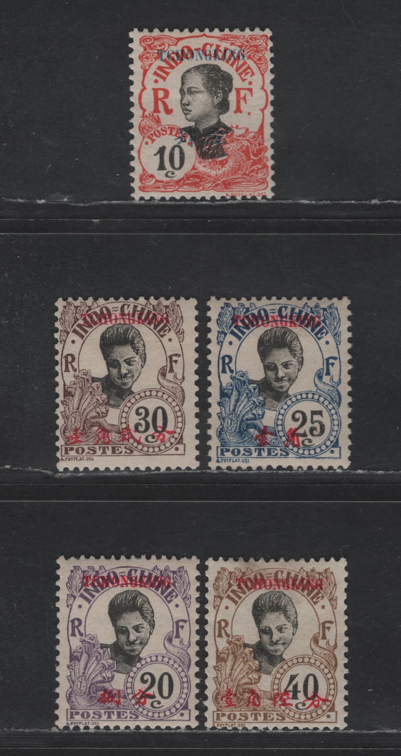 Lot 55 French Offices Abroad - China (Chungking) SC#37-38, 40-42, 44 10c - 40c Red & Black - Brown & Black Annamite Girl & Cambodian Girl, 1908 Surcharged Issue, 6 F/VFOG Singles