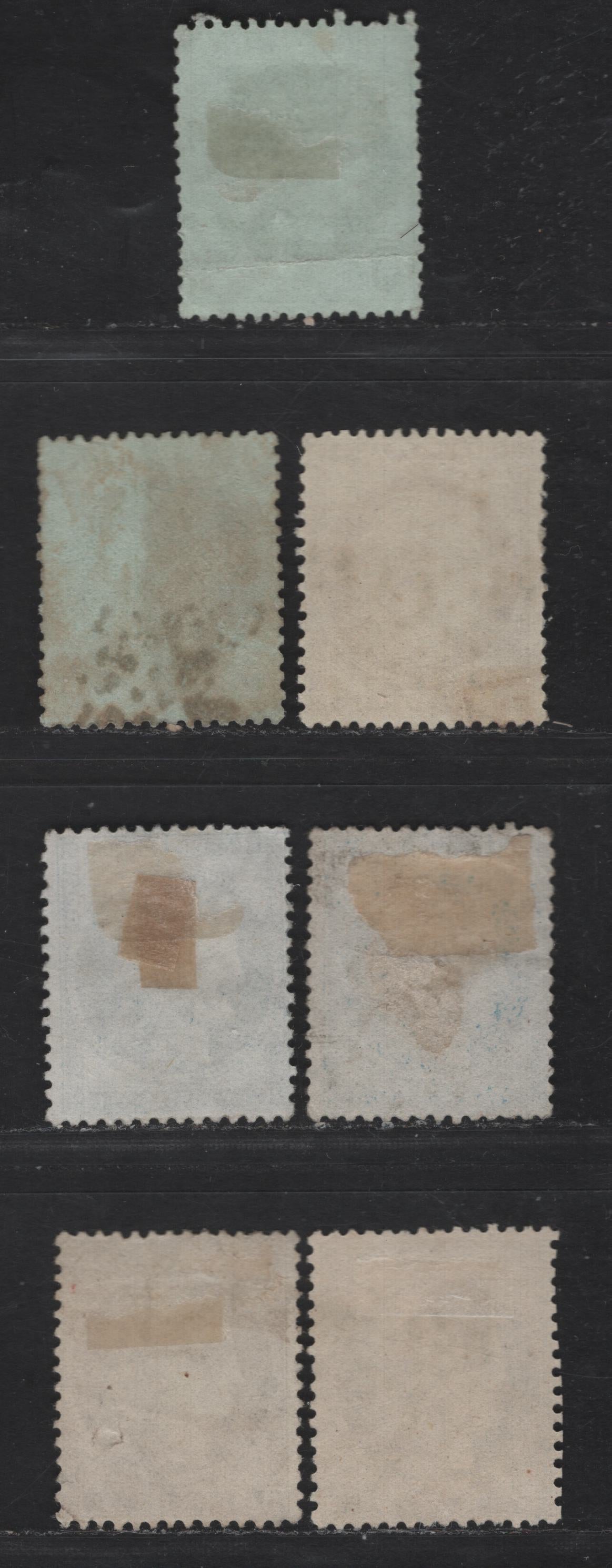 7 fine used singles of the 5c - 30c green on pale blue - gray brown Ceres Head from the 1870-1875 Ceres Heads Issue, smaller & larger numerals.