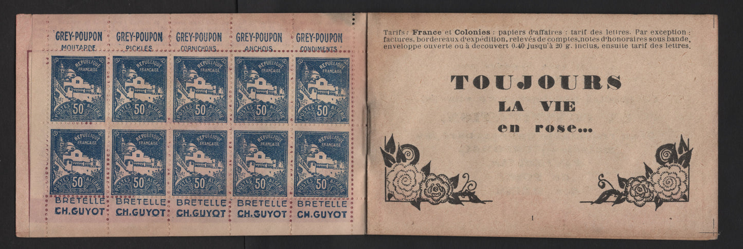 Lot 6 Algeria SC#49a 50c Blue La Pecherie Mosque, 1926-1939 Pictorial Definitives, A Very Fine Disturbed Gum Complete Booklet Of 20, Two Stuck Down Panes Of 10, Interleaving Pages, Scarce