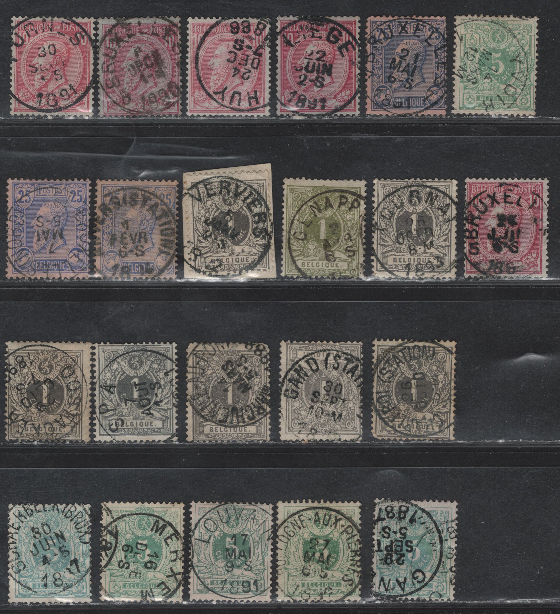 Lot 63 Belgium SC#49-53 1c Olive Green - 25c Blue On Pink, 1884-1885 King Leopold I Sidefaces Issue, 23 VG-VF Used Singles A Selection Of SON Town Cancels