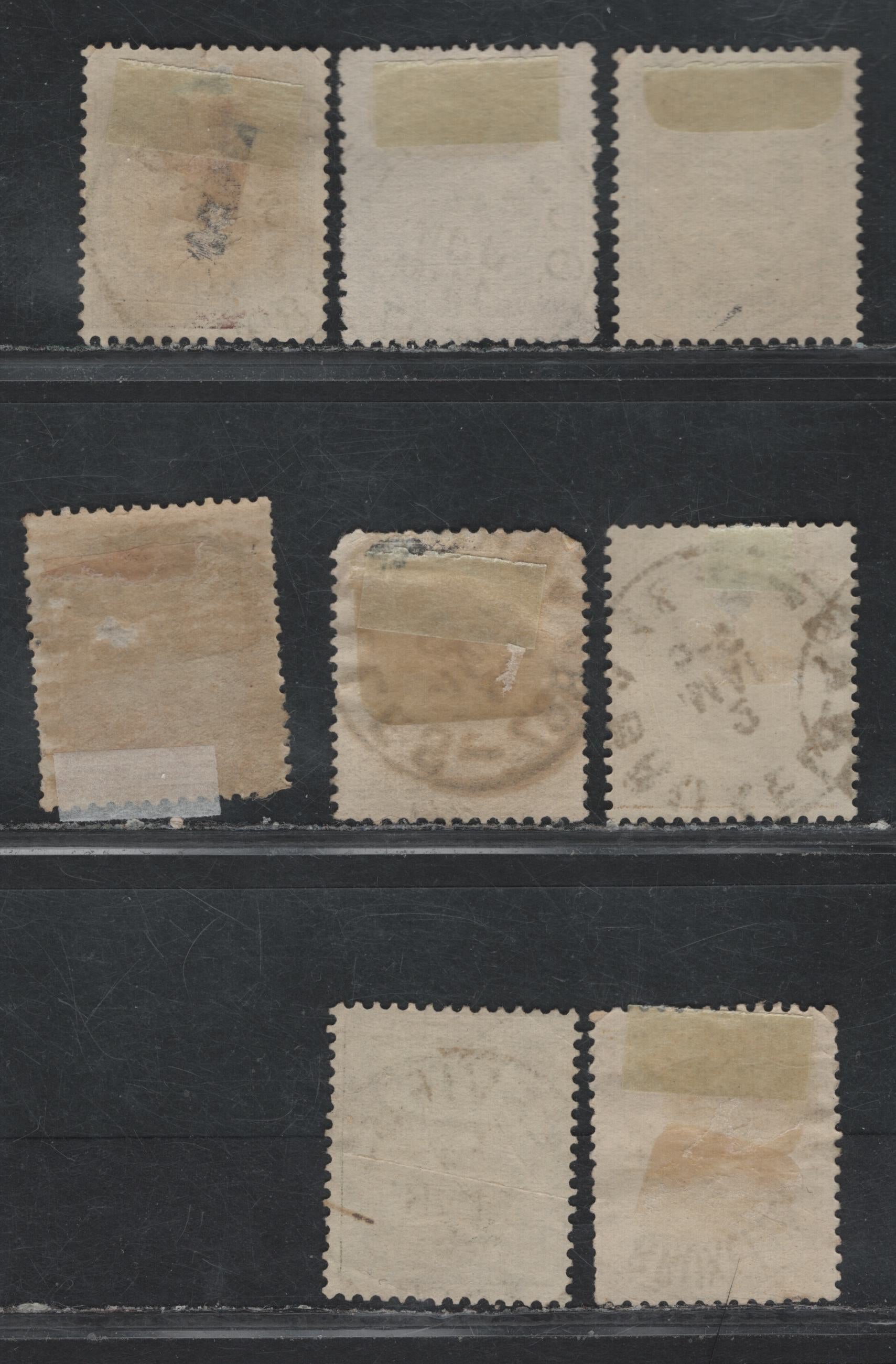 8 VG-VF Used singles from the 1886-1891 King Leopold I Sidefaces Issue with SON town cancels incl. Gosselies, Veruiers, Mons Station, Ath, Port de Flandrei ,Brussels, Lodelin Sori. 20c Olive On Greenish, 20c Deep Olive On Greenish, 35c Violet Brown On Brownish, 50c Bistre On Yellowish