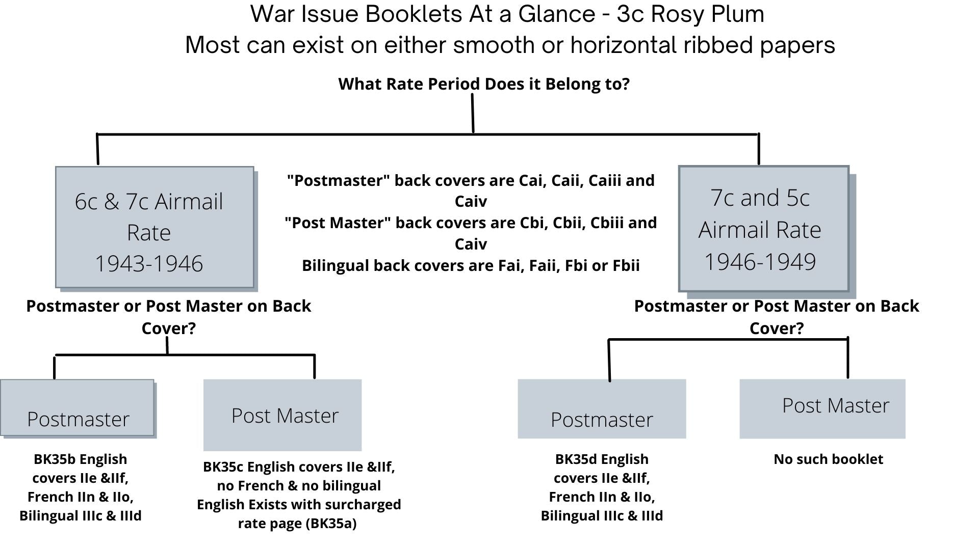 Lot 348 Canada #BK35b 1942-1949 War Issue, Type II, Complete 25¢ French Booklet, 2 Panes of 3c Rosy Plum, Horizontal Ribbed Paper, Harris Front Cover Type IIo, Back Cover Type Di, 7c and 6c Airmail Rate Page