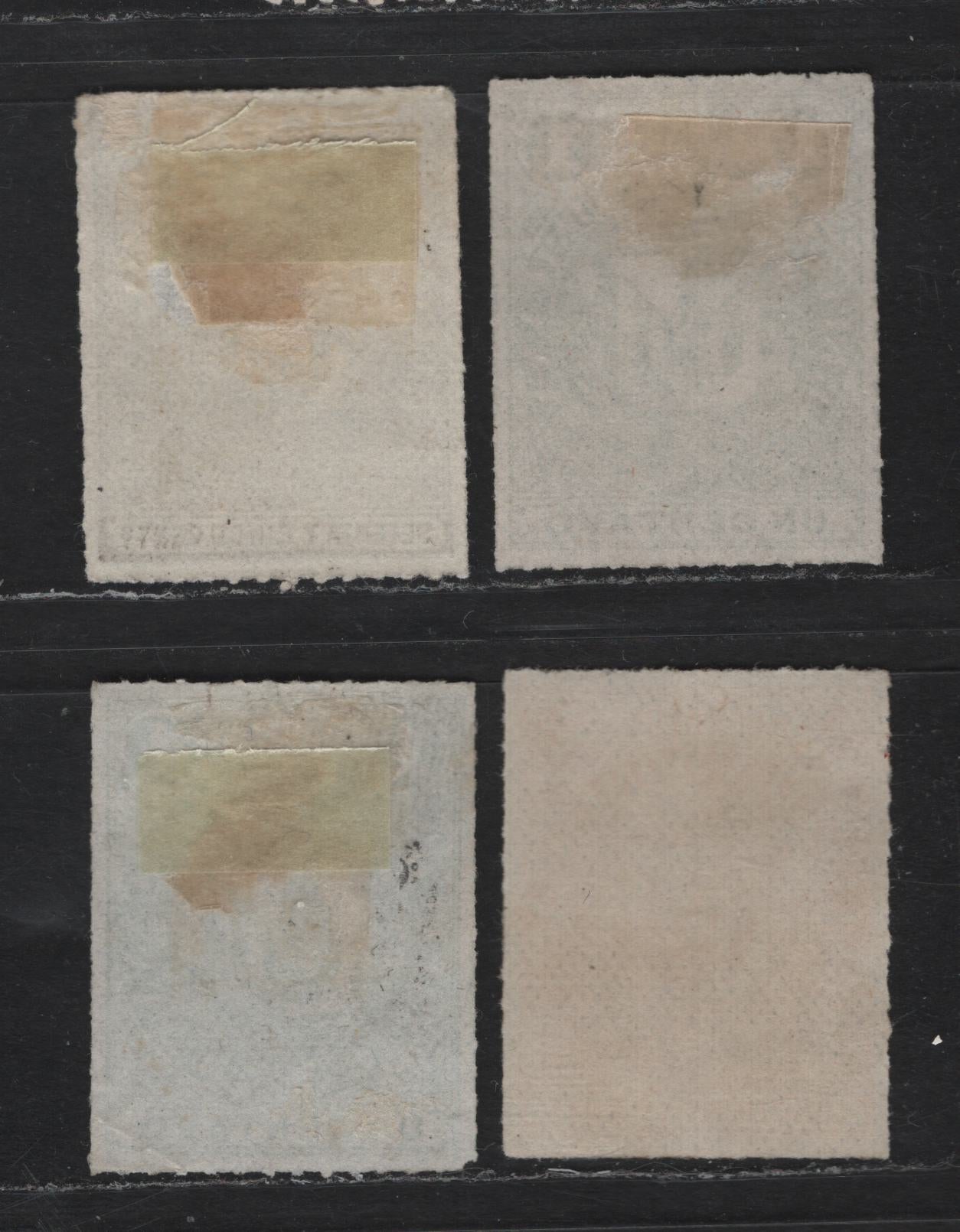 4 F/VFOG & unused singles of the 1c, 50c & 75c green, yellow & ultramarine Arms from the 1880-1881 Rouletted Arms Issues, with & without network, small hinge thin on 75c, 50c & 1c (#45) no gum.