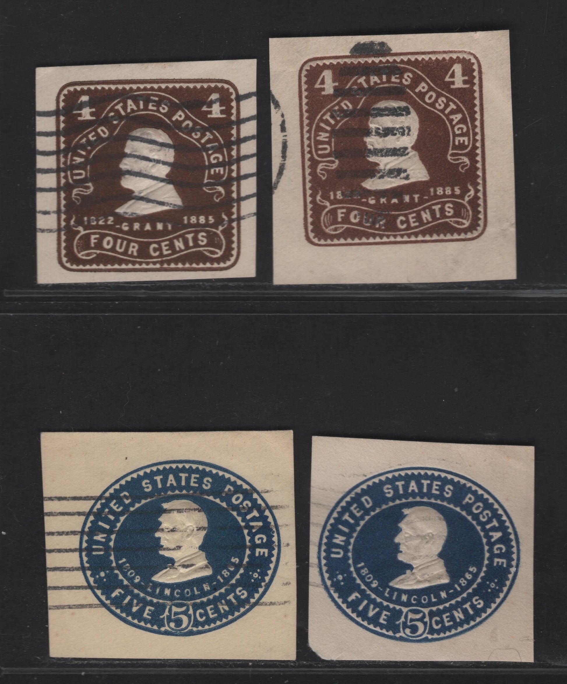 Lot 77 United States SC#U390, U393-U394 4c - 5c Chocolate, Dark Brown & Dark Blue Grant - Lincoln, 1903 Heads Issue, 4 Fine/Very Fine Used Singles, White & Amber