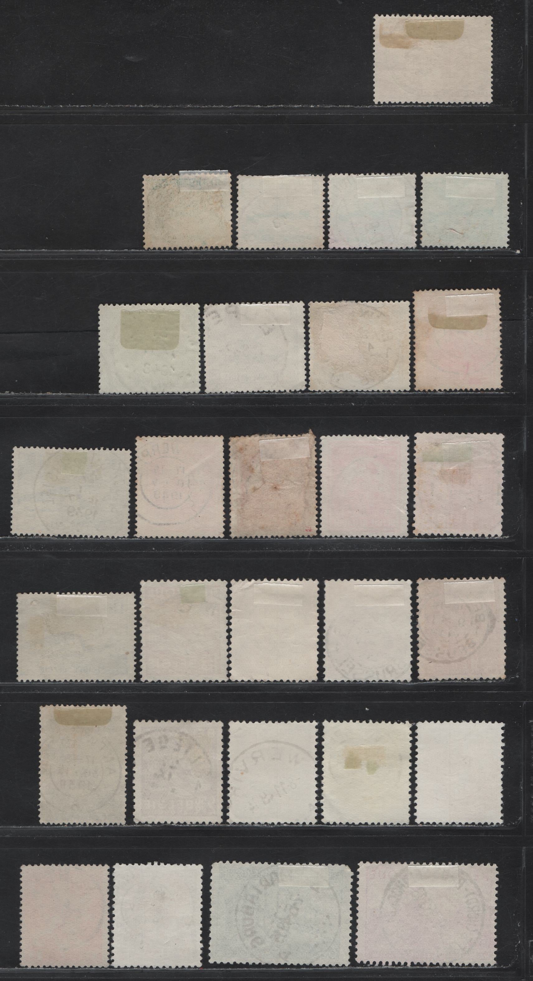 28 F&VF Used singles of the 35c dark blue green - 6fr blue green from the 1938 Int'l Water Exhibition - 1948 Industry Definitives Issues all with SON town cancels.