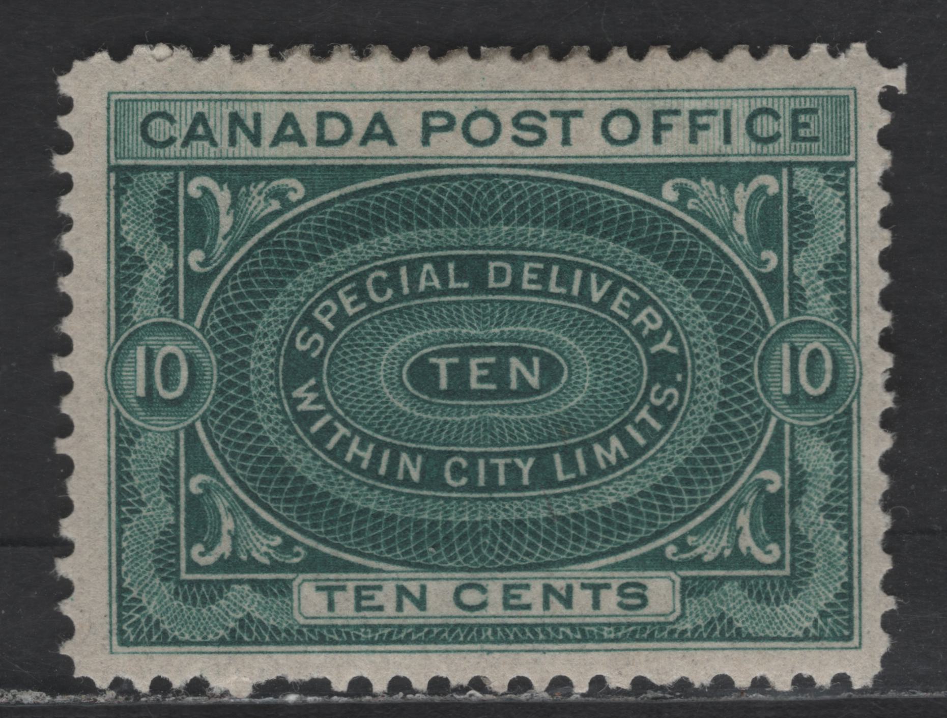 Lot 82 Canada SC#E1 10c Blue Green Design, 1898 Special Delivery Issue, A FOG Single, Vertical Wove Paper