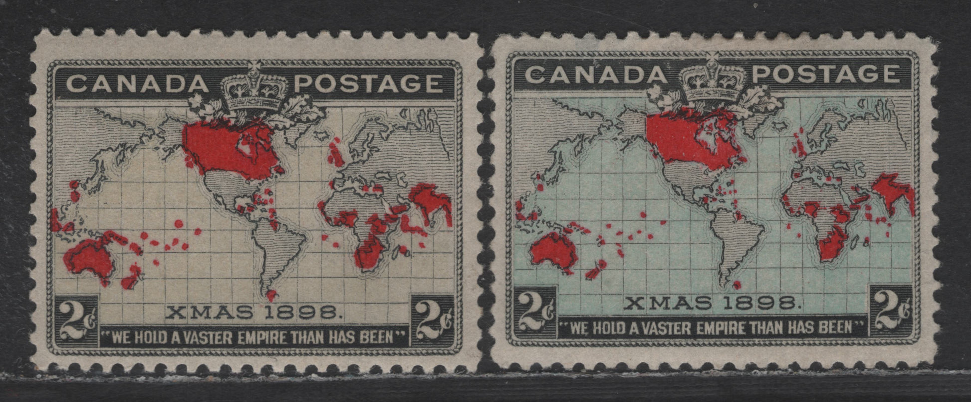Lot 83 Canada SC#85i, 86 2c Gray/Blue, Black & Carmine Mercator's Projection, 1898 Imperial Penny Postage Issue, 2 FOG Singles, The Blue Shade Is VF Centered, But Has A Shallow Hinge Thin