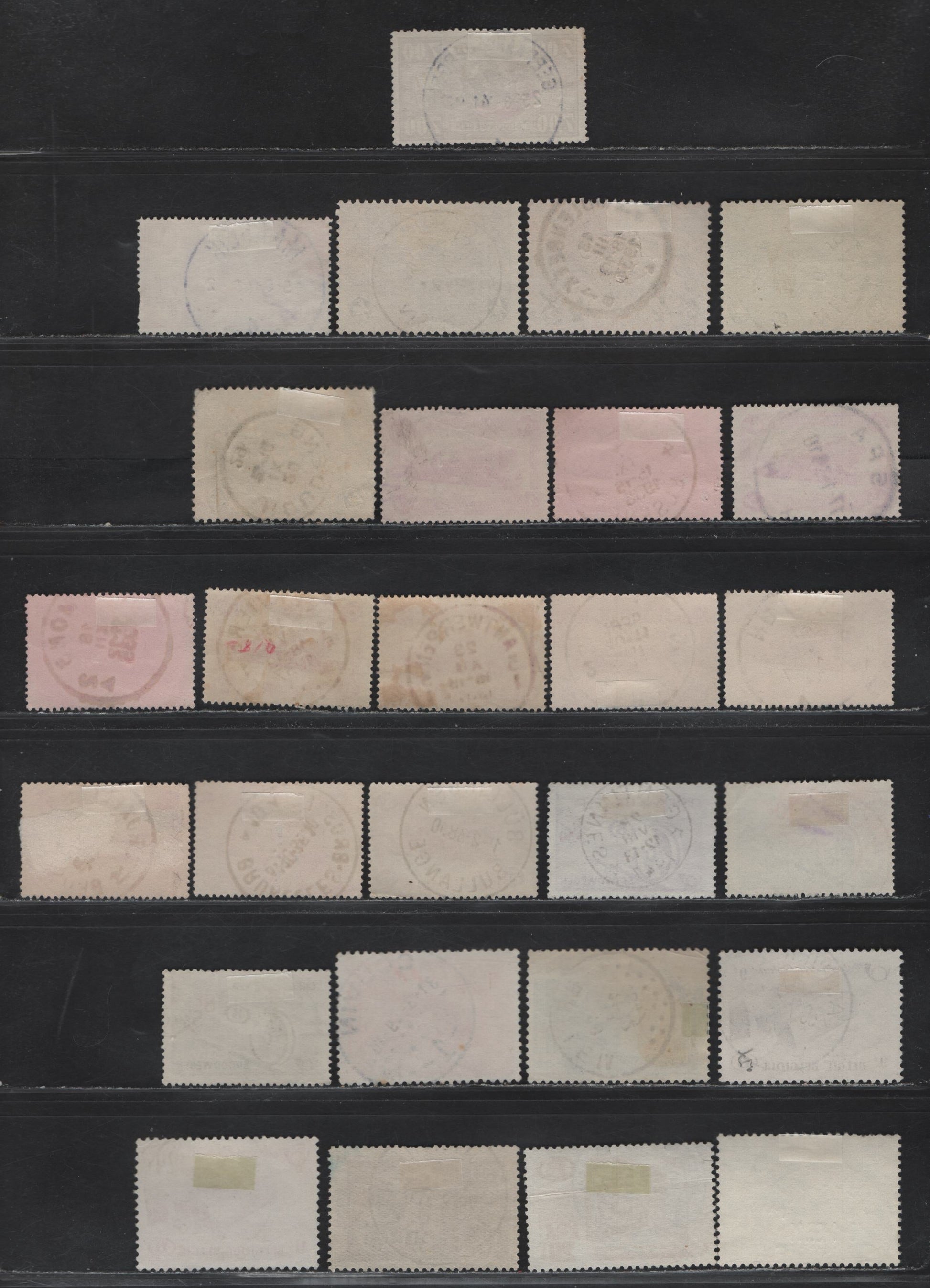 27 fine/very fine used singles of the 4fr - 28f on 26f gray - blue Parcel Post from the 1929-1964 Parcel Post Issues, scarcer CDS town cancels instead of the more common boxed cancels, q335 is creased & not counted.