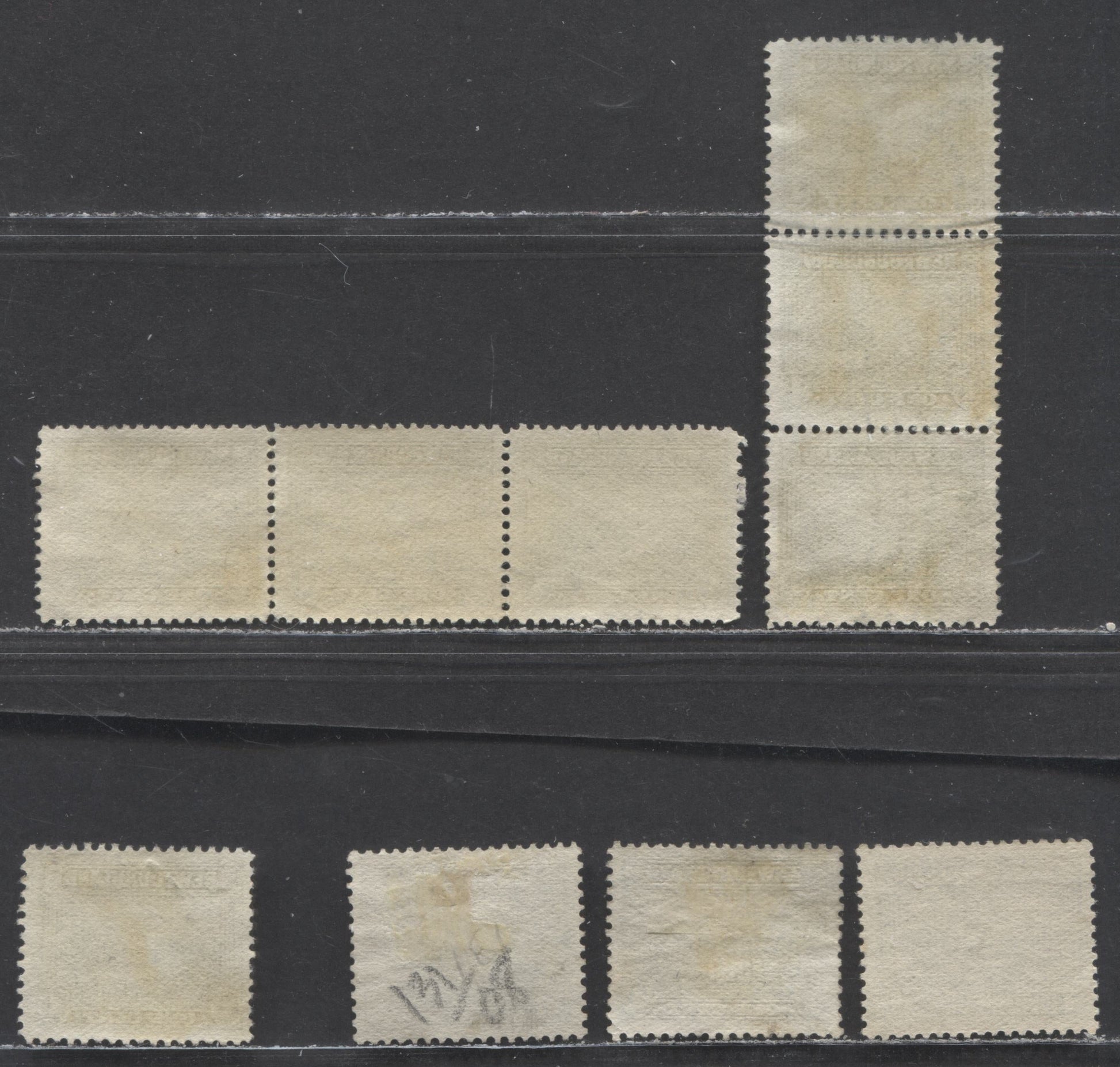 Newfoundland #131 1c Deep Bluish Green Twin Hills, 1923-1924 Pictoral Issue, 4 Very Fine Used Singles And 2 Strips Of 3 All With Unlisted Re-Entries, Mostly Occuring Near Or Above Upper Frameline. Also Includes Misplaced Entry