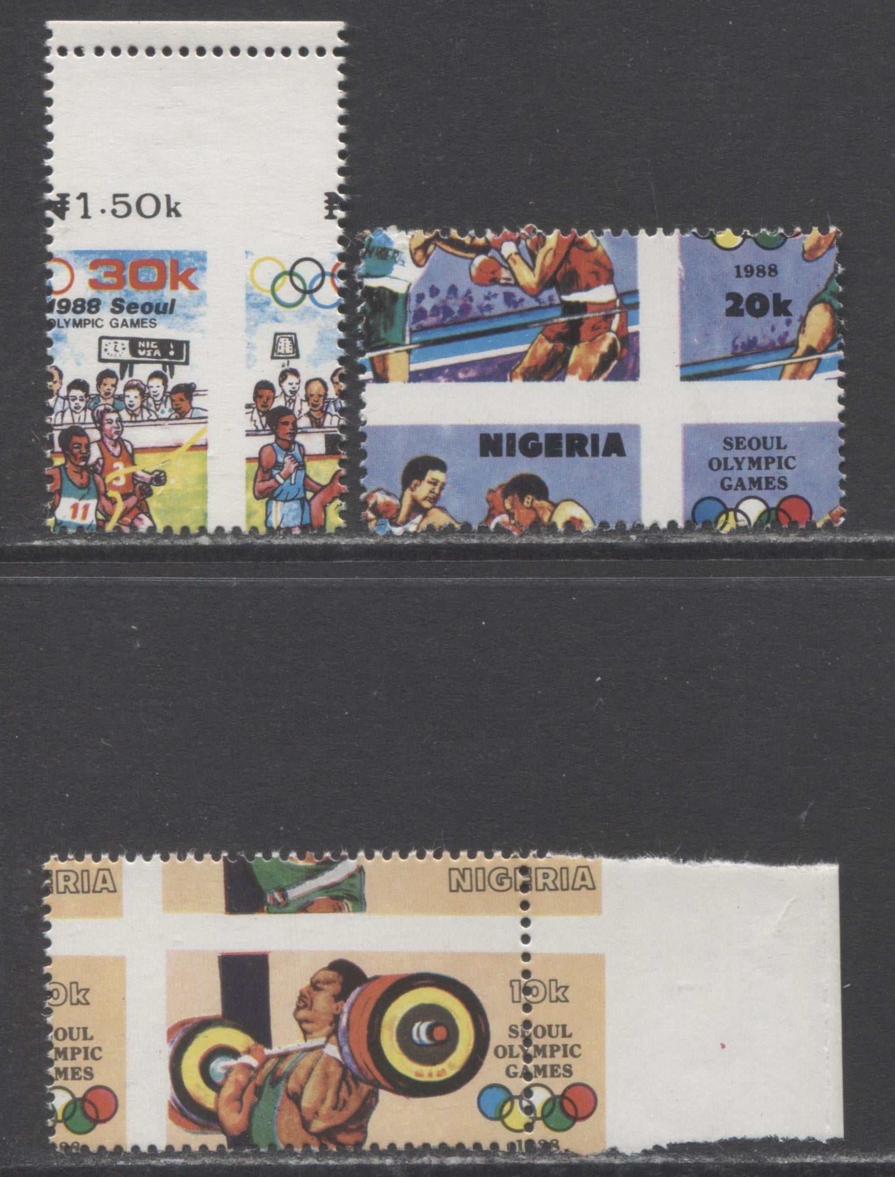 Nigeria SC#538-540 1988 Seoul Olympics, 3 VFNH Misperf Singles, Click on Listing to See ALL Pictures, Estimated Value $10 USD