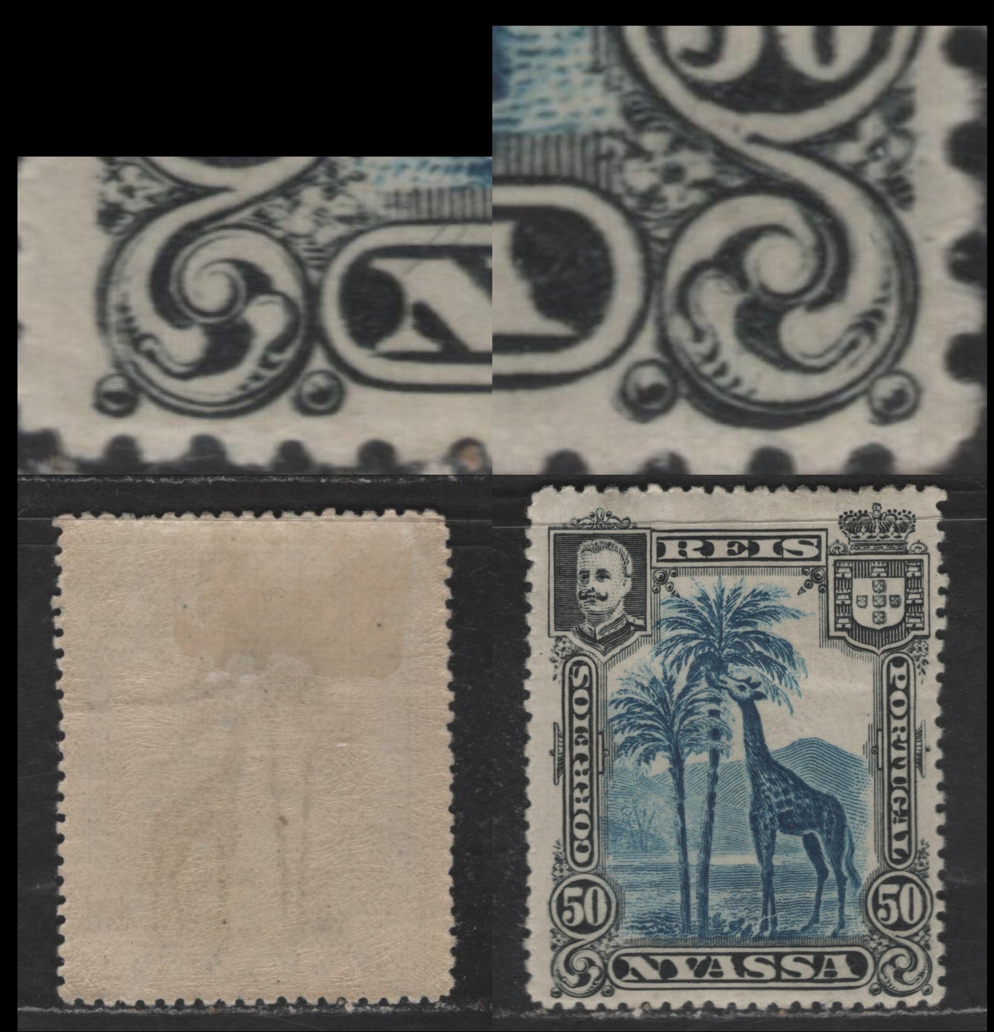 Nyassa SC#32var 50r Black & Blue Giraffe, 1901 Pictorial Issue, A VFOG Single, Perf 14.5, Re-Entry Of Both Bottom Scrolls