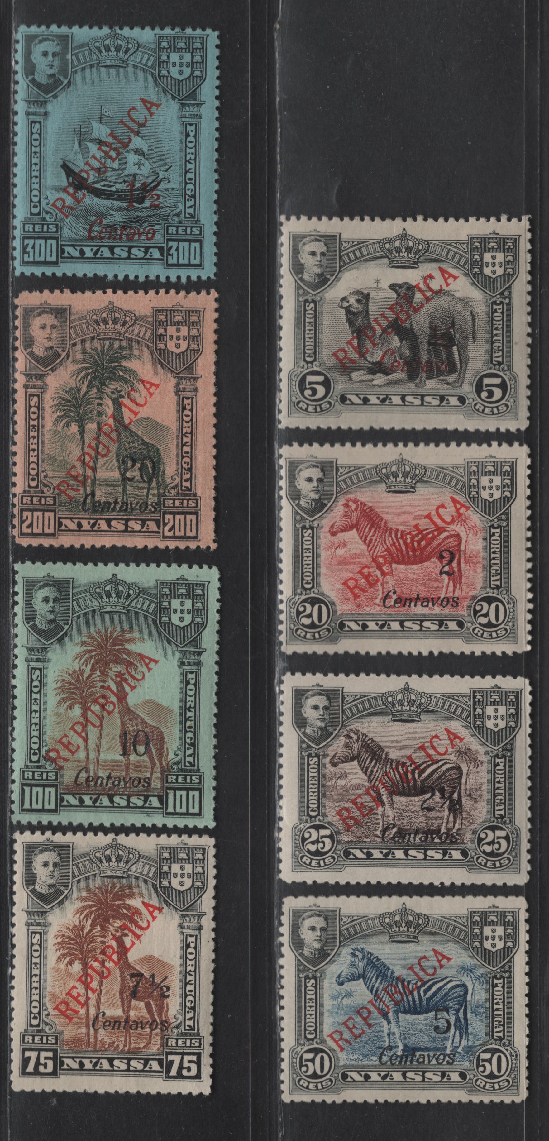 Nyassa SC#83, 85-87, 89-91, 93 1/2c on 5r - 20c on 200r Black - Black & Deep Green on Salmon Camels - Ship, 1921 Lisbon Surcharged Pictorial Issue, 8 F/VFOG Singles