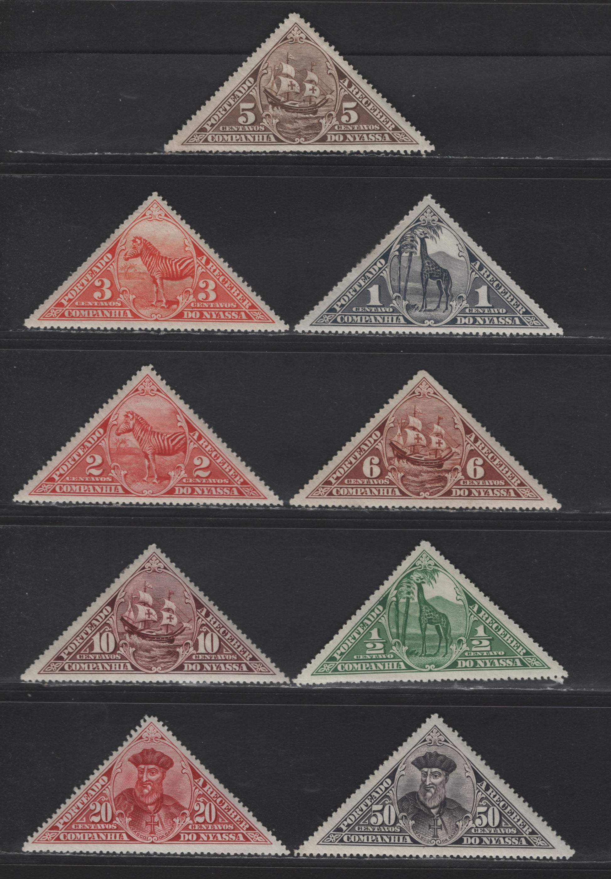 Nyassa SC#J1-J9 1c - 50c Gray Black - Blackish Brown Zebras - Vasco da Gama, 1924 Postage Dues, 9 VFOG Singles