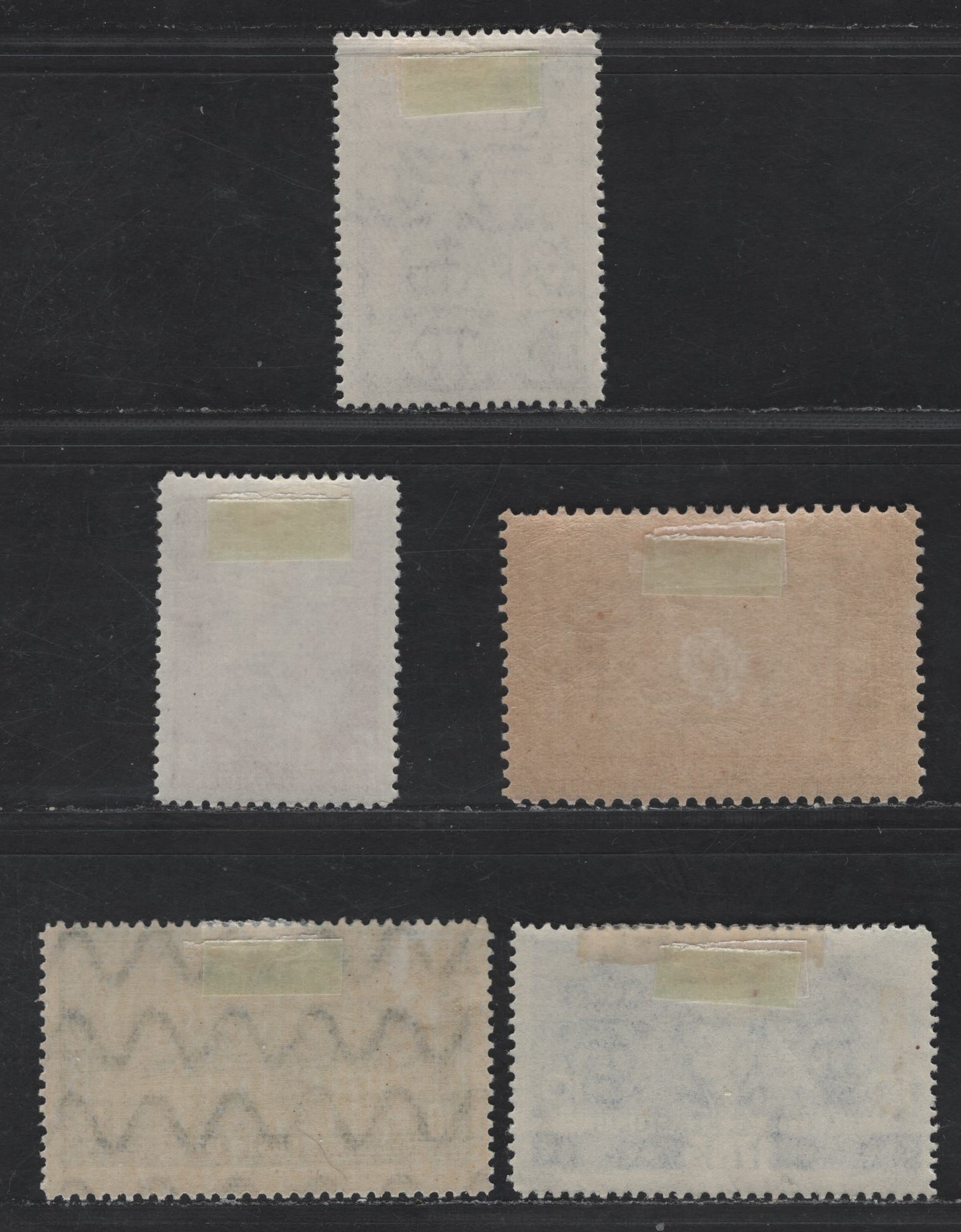 5 F/VFOG singles of the 10i - 6i+6i prussian blue - carmine rose Parliament House - Jamboree Emblem from the 1928 -1936 Reunion of Bessarabia & Romania - Semi Postal Issues.