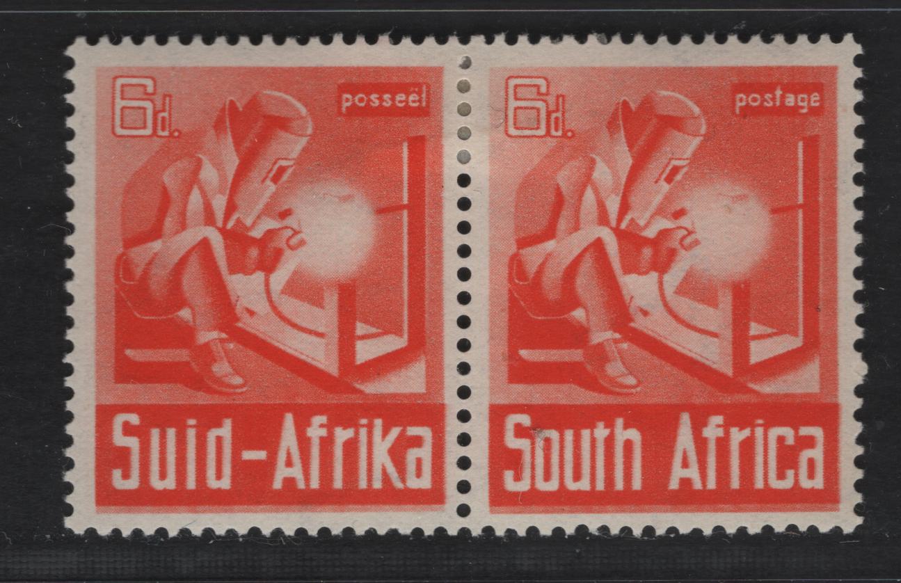 Lot 166 South Africa SC#87 6d Bright Red Orange Welder, 1941-1943 War Issue, A VFOG Pair, Perf 14, Wmk 201