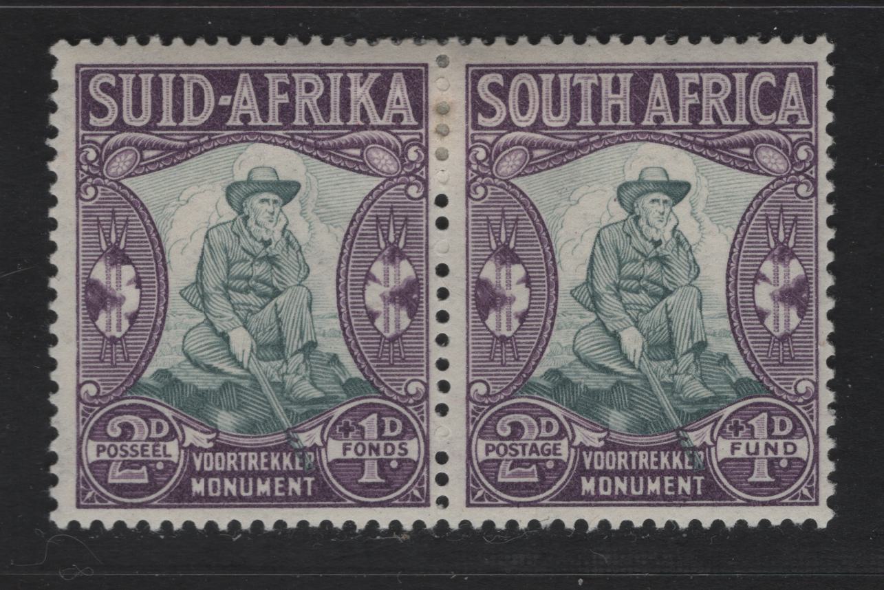 A VFOG se-tenant pair of the 2d + 1d dull violet & gray Voortrekker from the 1933-1936 Semi Postal Issue, perf 14, Wmk 201.