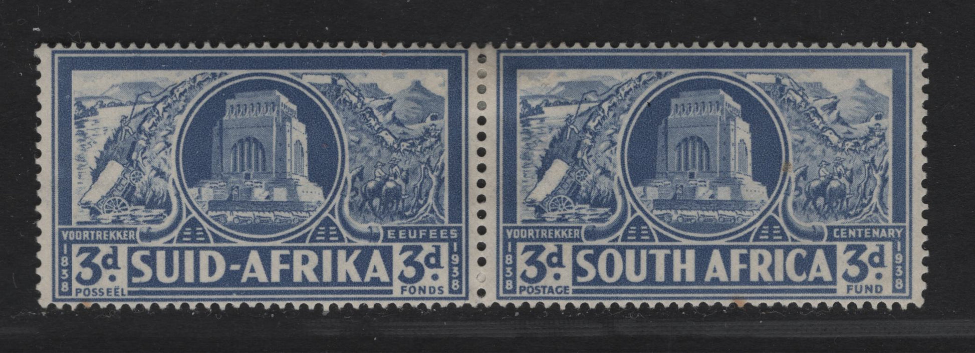 Lot 168 South Africa SC#B8 3d + 3d Chalky Blue Proposed Monument, 1938 Semi Postal Issue, A FOG Se-tenant Pair, Perf 14, Wmk 201