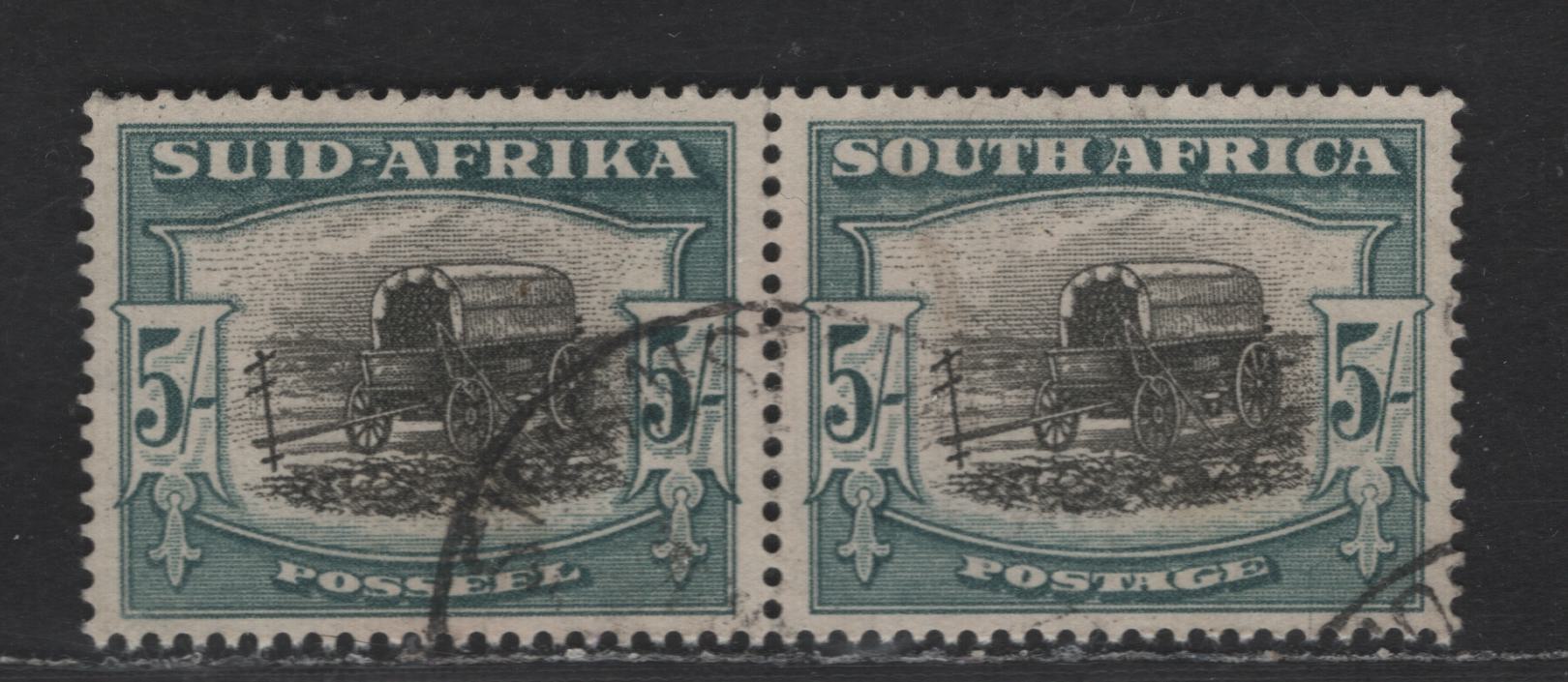 South Africa SG#122 5/- Black & Pale Blue Green Wagon, 1947-1954 Screened Rotogravure Issue, A Very Fine Used Pair, Type 1, 1949 Printing,