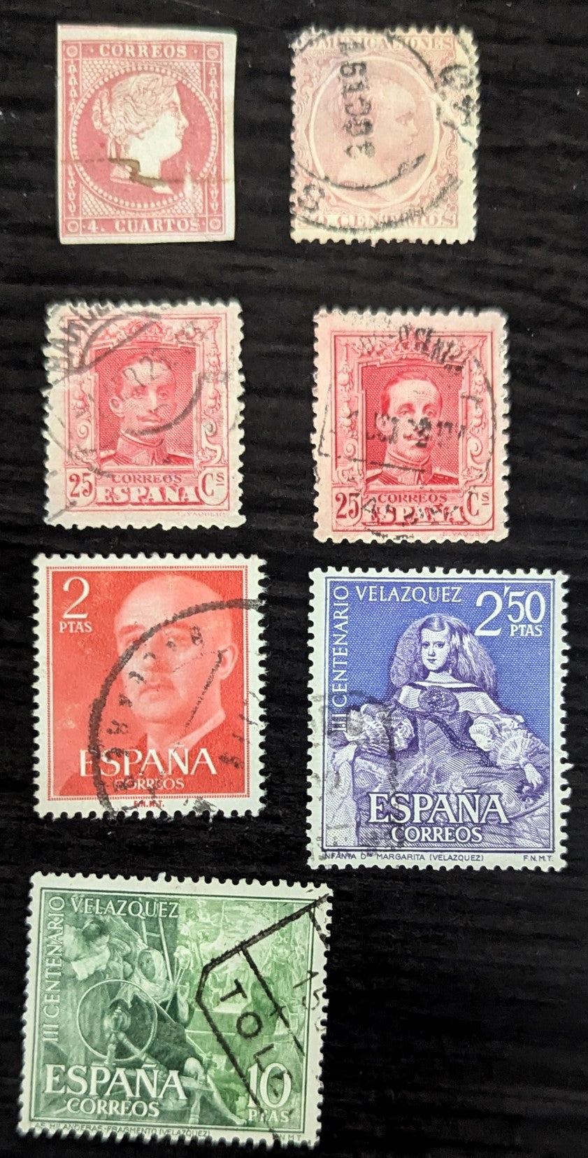 Spain SC#37/986 1855-1961 Queen Isabela II - Velaquez 'The Spinners' Issues, 7 VG To VF Used Singles, Click on Listing to See ALL Pictures, 2017 Scott Cat. $9.85
