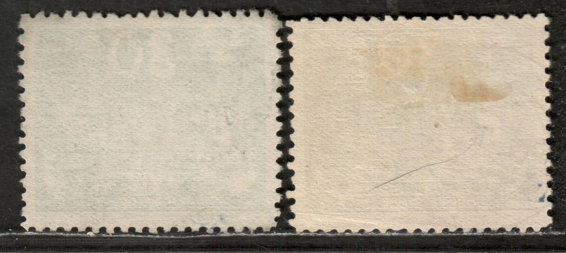 2 Very Fine Used singles from the 1924 UPU Congress Issue, 30 ore deep blue & greenish blue. 2022 Scott cat. $131.