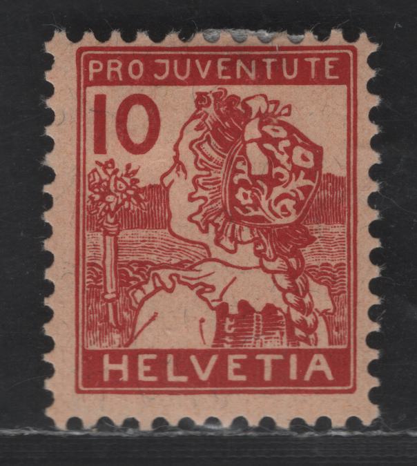 Lot 176 Switzerland SC#B3 10c Red on Buff Girl, 1915 Semi Postal Issue, A FOG Single, Perf 11.5