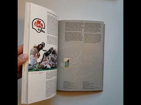 The Canada Post 1987 annual collection with 46 pages, a soft cover booklet inside a box. The bilingual pages are filled with details about the stamps issued during the year, with information about the designs and the number of stamps released.
