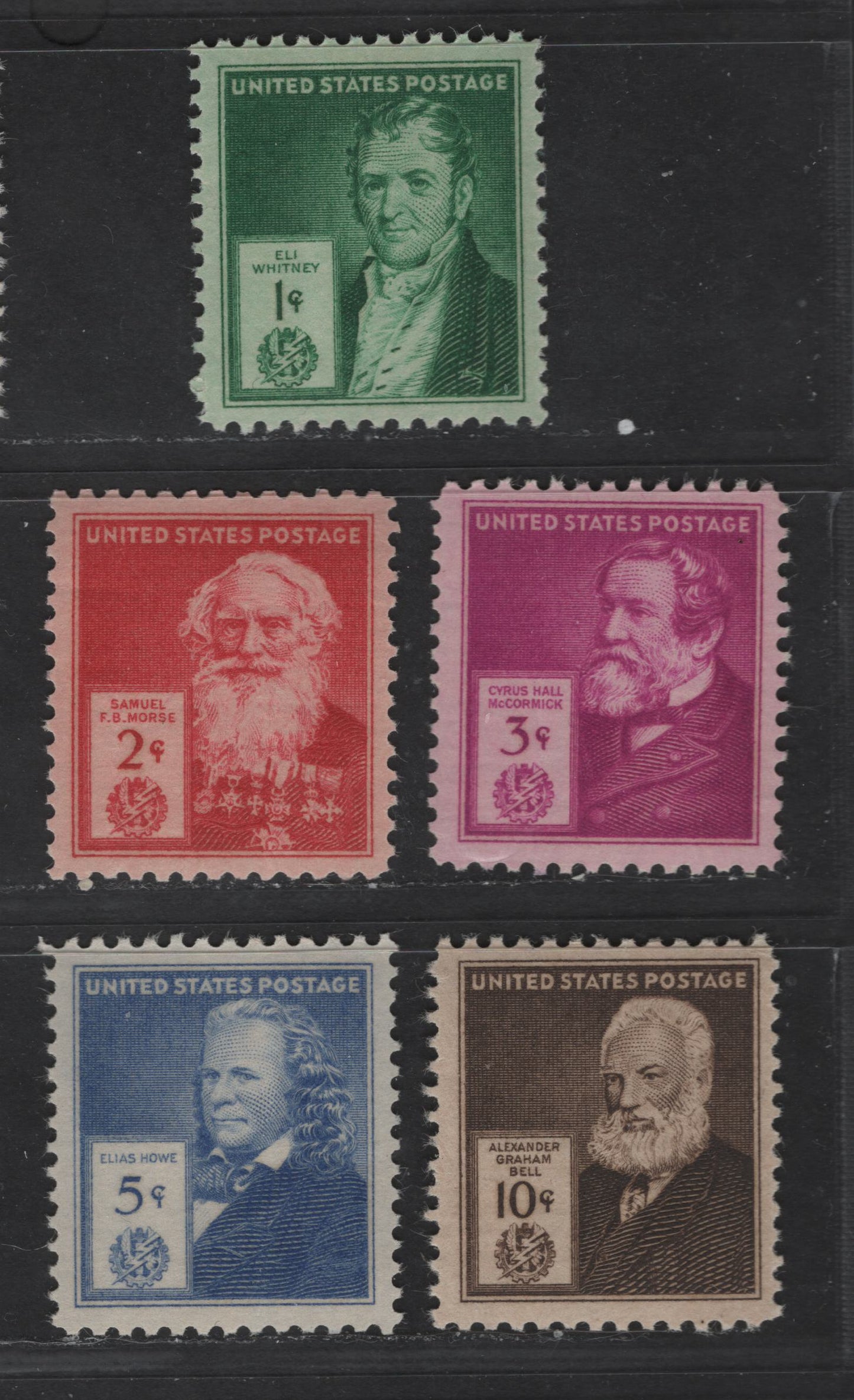 Lot 109 United States Of America #889-893 1c-10c Bright Blue Green - Dark Brown Inventors, 1940 Famous Americans Issue, 5 VFNH Singles
