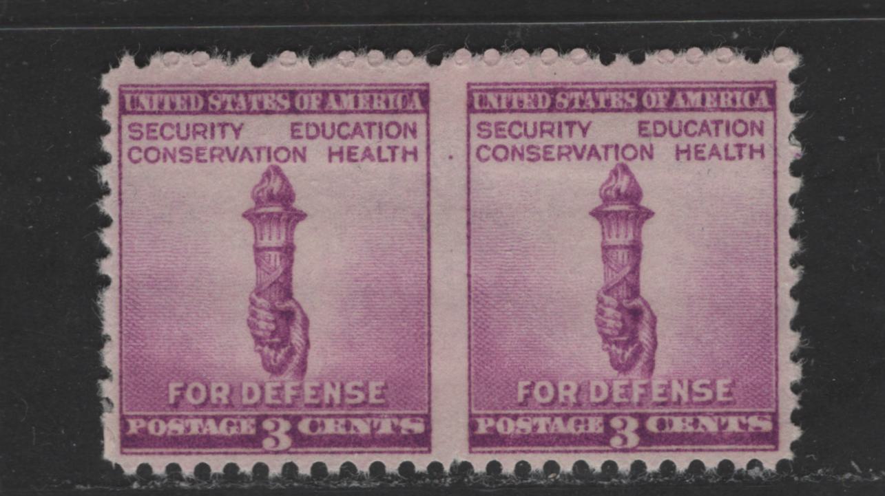 Lot 58 United States Of America #901a 3c Bright Mauve Torch Of Enlightenment, 1940 National Defense Issue, A VFNH Pair 95% Imperf Between Stamps, 30% Imperf On Right Margin
